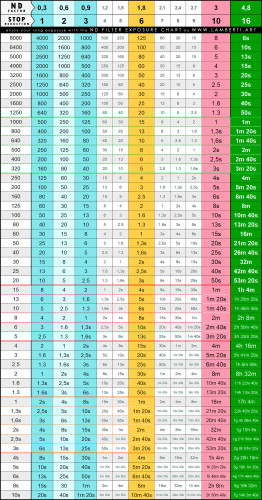 Link to download the chart in PDF format: ND Filter Exposure Chart