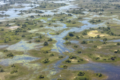 Botswana, Okavango Delta, an alluvial plain, which in the period of full amplitude reaches 16,000 square kilometres out to become the second largest inland delta in the world.