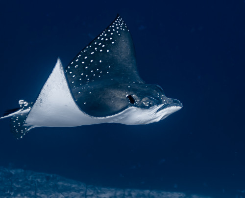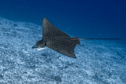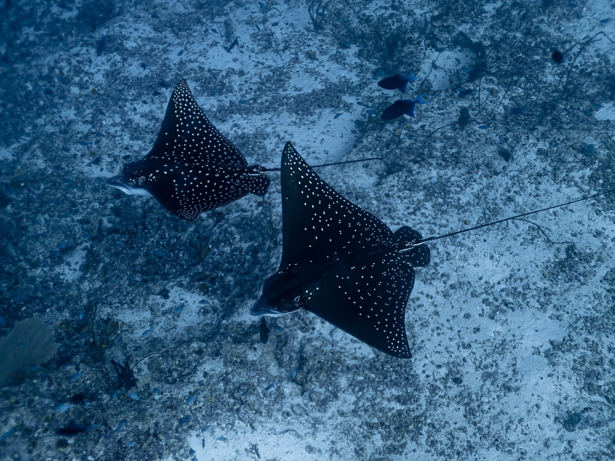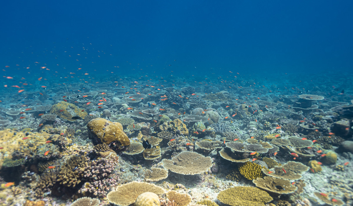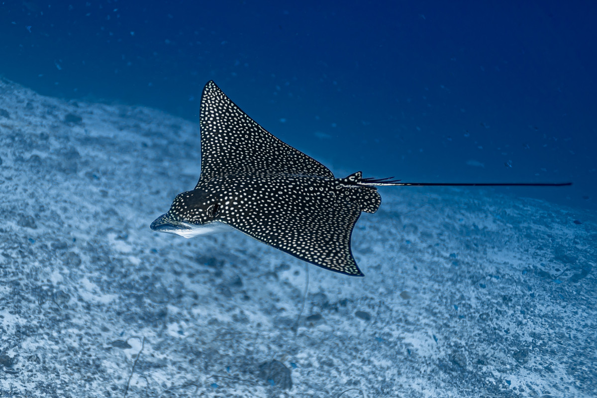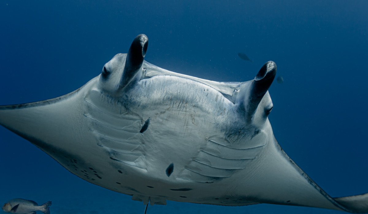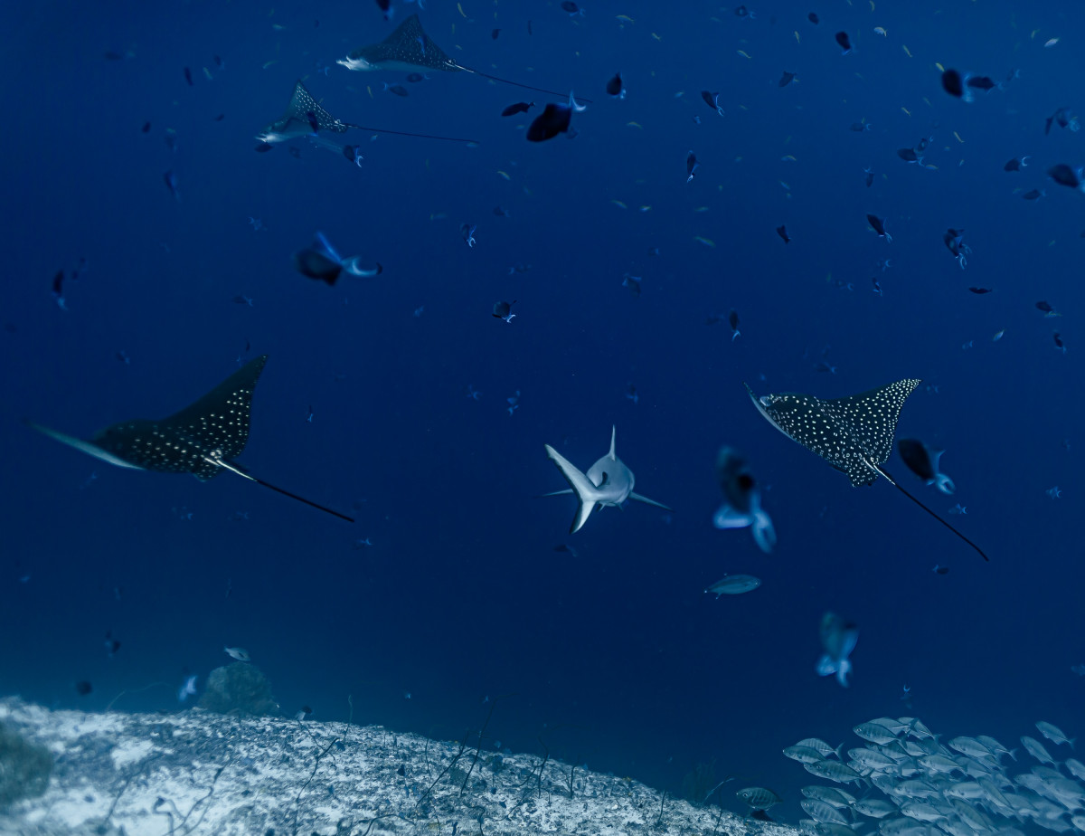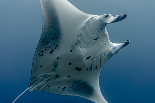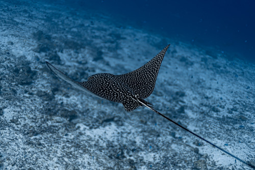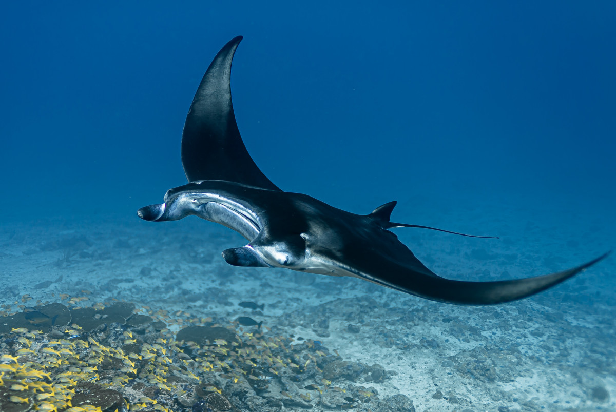 In just ten minutes of sailing westwards you end the canal by reaching the Indian Ocean. This is where is located one of the most exciting dive sites in the Maldives as the combination of strong currents and nutrient-rich waters create the perfect habitat for large groups, sometimes as many as fifty and more specimens, of different pelagic fishes. Diving close to 40 meters deep of the drop-off will be possible to encounter giant trevally, barracudas, manta rays, eagle rays, sharks and whale sharks.