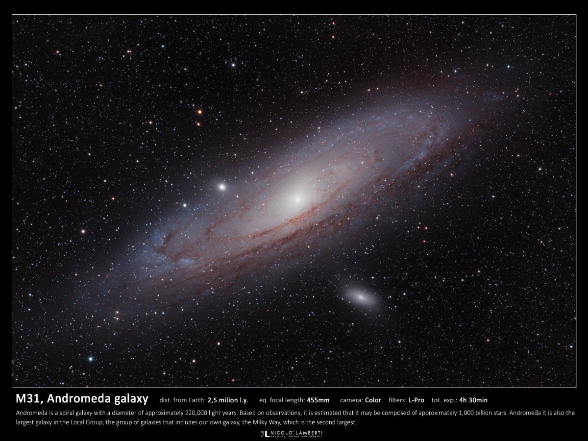 Light takes 2.5 million light years to cover the distance between Earth and the Andromeda galaxy.
