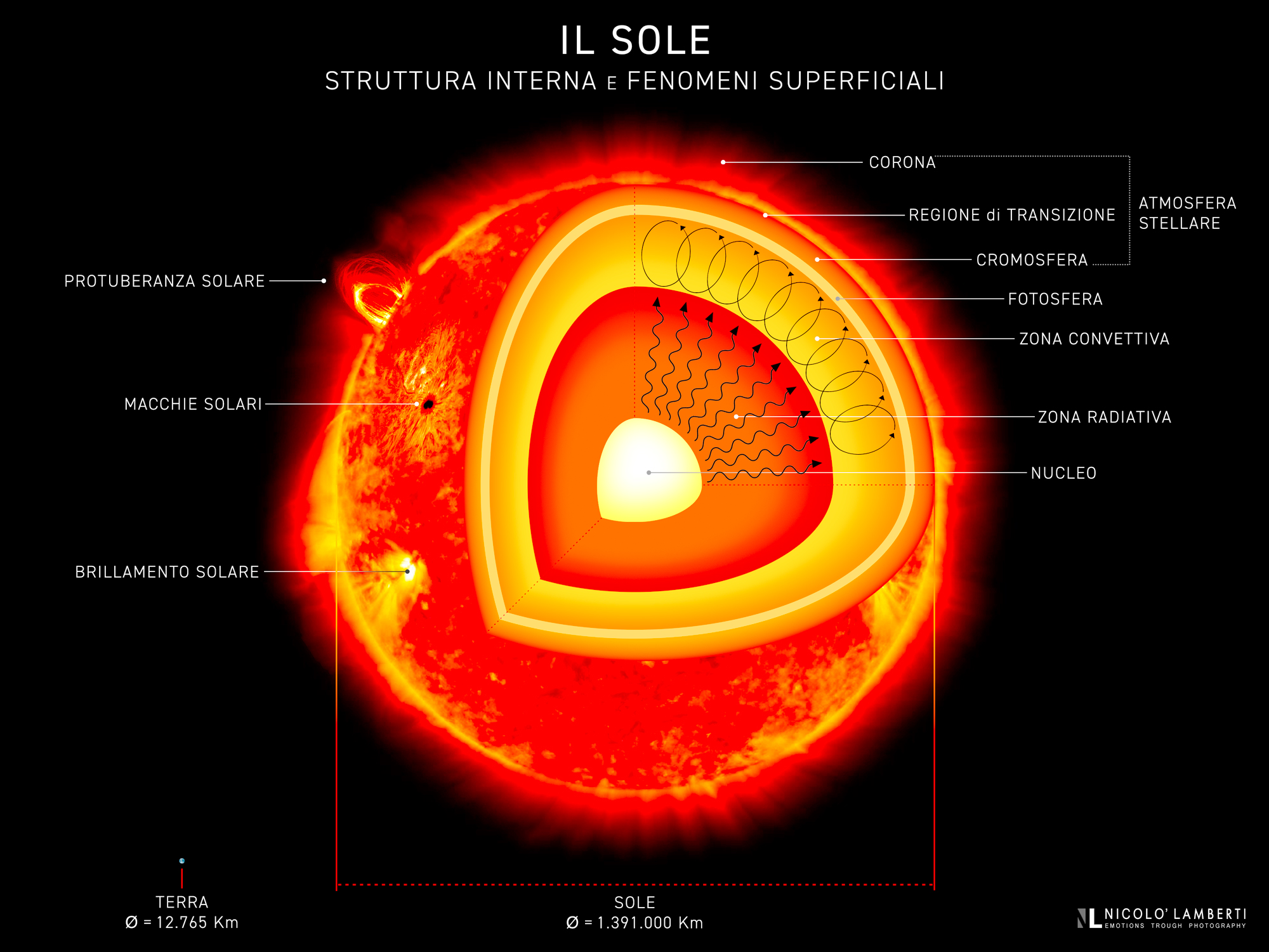 Solo quando il fotone raggiunge la superficie (la fotosfera), può finalmente “scappare” nello spazio e viaggiare alla velocità della luce.