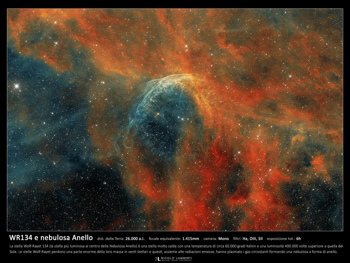Una nebulosa, è una nube interstellare in cui si accumulano i gas e le polveri che vagavano liberi all'interno di una galassia. Normalmente circa il 70% della massa di queste nubi interstellari è composto da idrogeno, mentre per la restante parte sono costituite in prevalenza da elio e infine da tracce di elementi più pesanti come il calcio e come i composti inorganici quali; acqua, monossido di carbonio, acido solfidrico, ammoniaca e acido cianidrico.