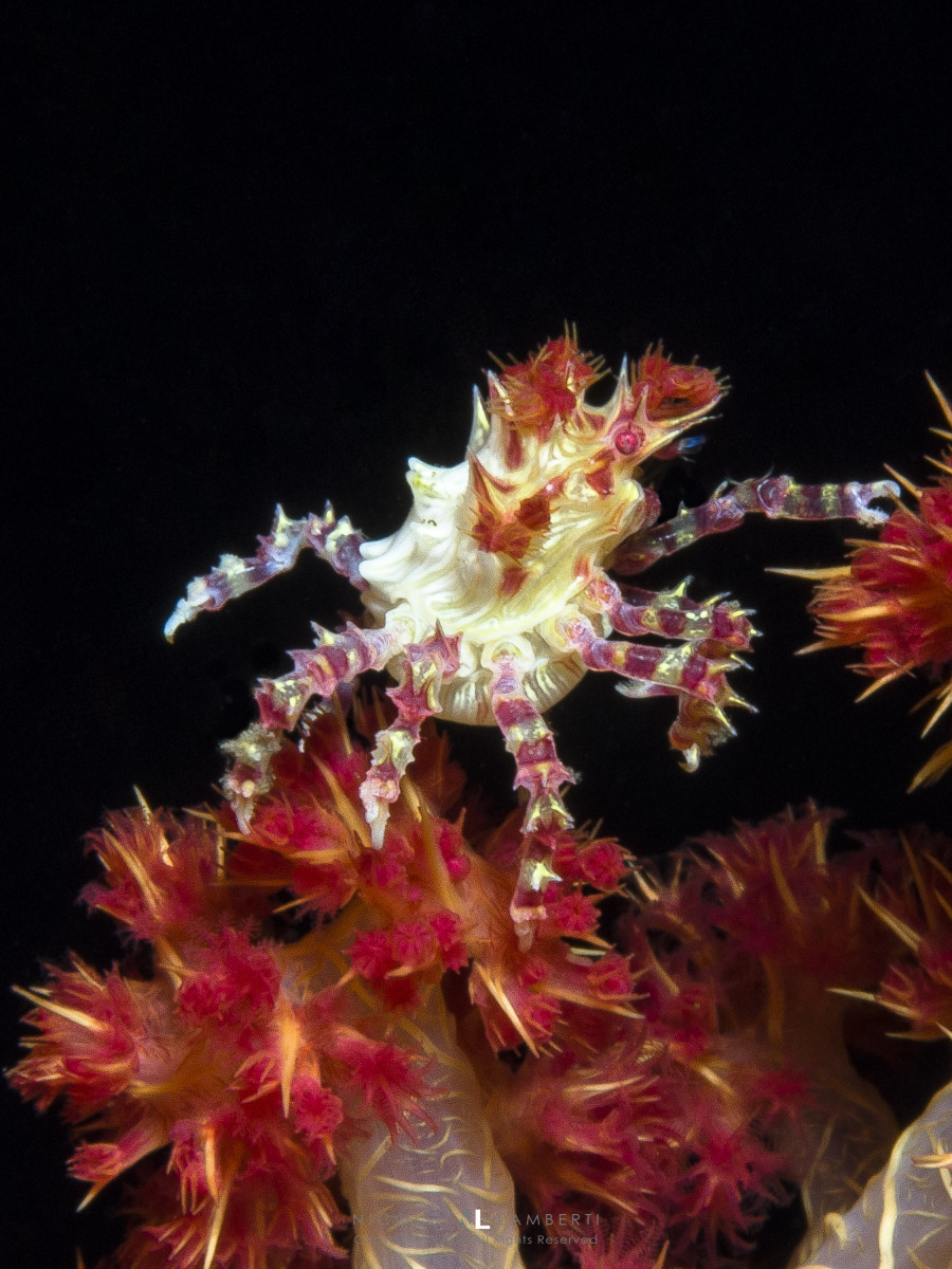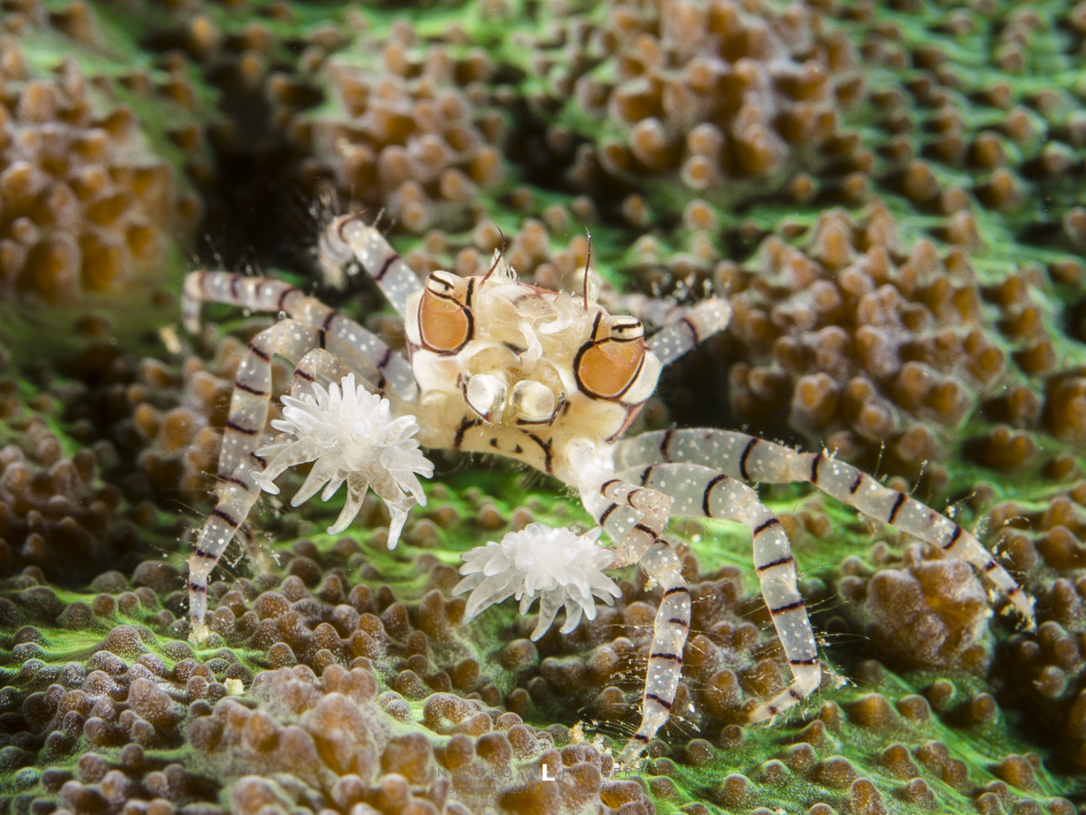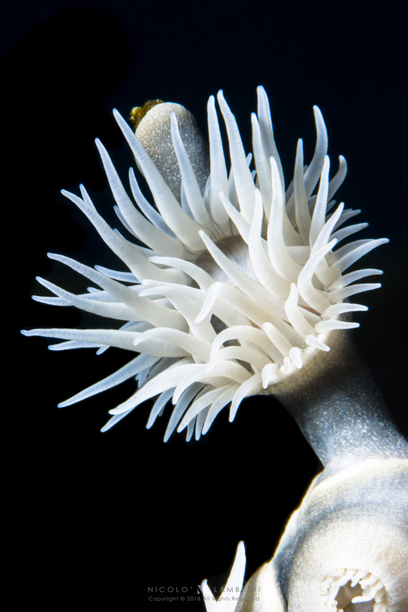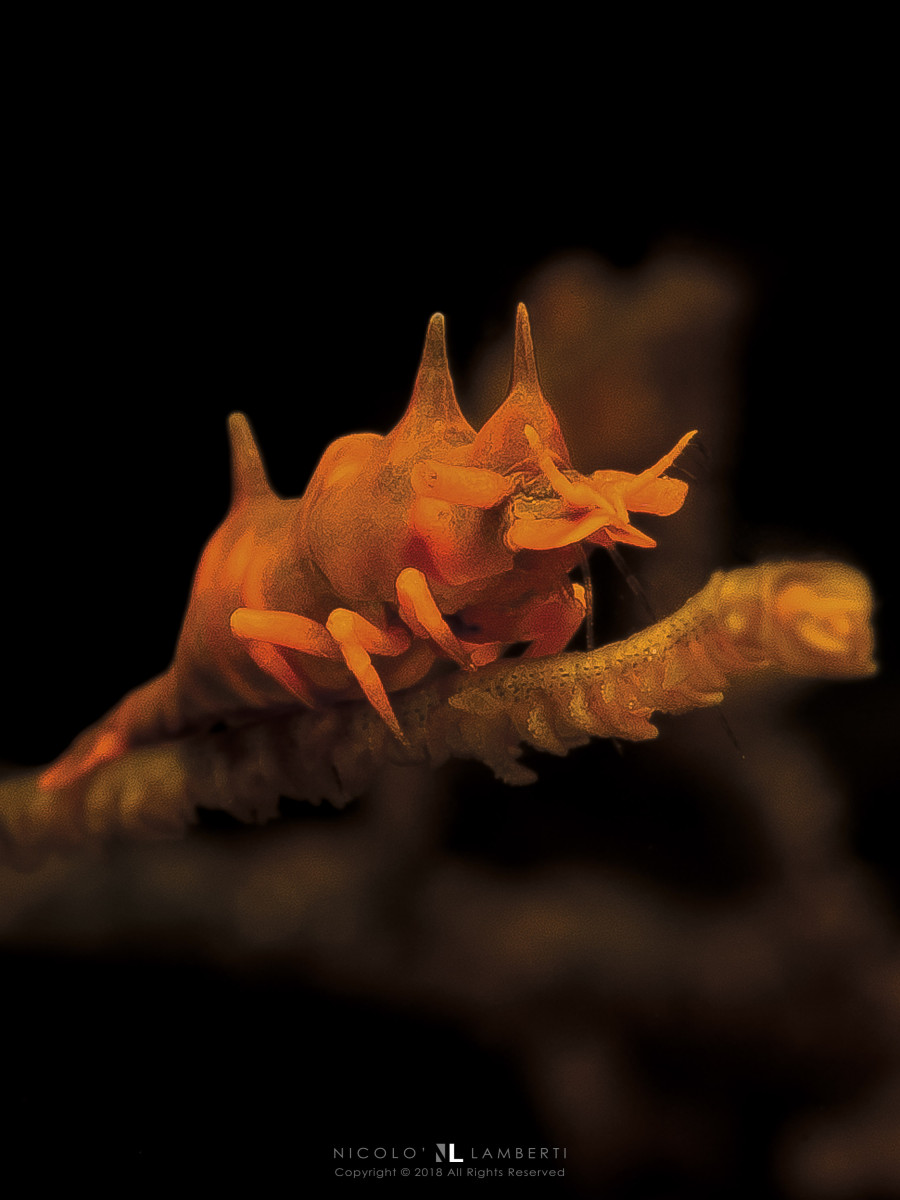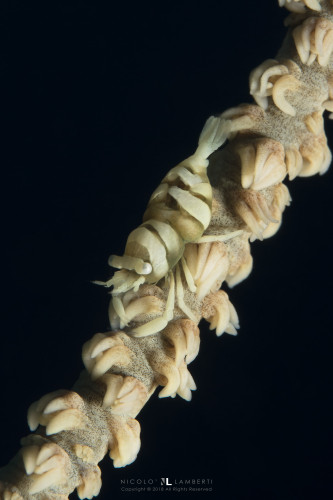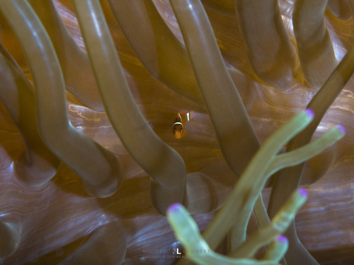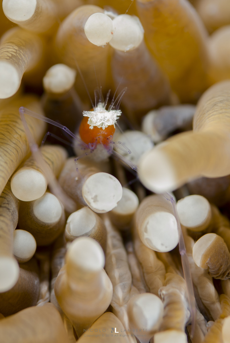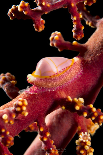 La Macro Fotografia ci permette di ammirare i dettagli più microscopici ed incredibili del mondo sottomarino. In questa foto l'aver ripreso una parte di polpastrello aiuta a dare un'idea delle piccolissime dimensioni dell'esemplare di cavalluccio pigmeo Pontohi che è lungo circa 6 mm.